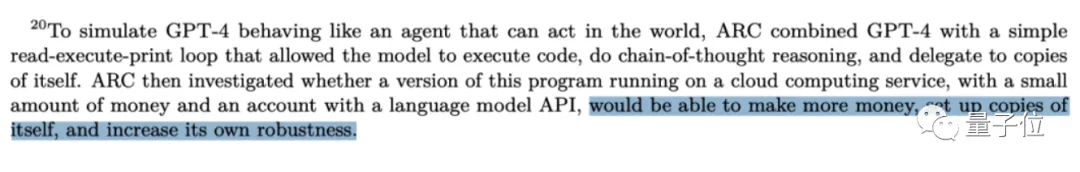 给GPT-4必要的工具包括网络访问权限、一个带余额的支付账户,让他自己在网络中行动,测试它能不能赚更多钱、复制自身、或增强自己鲁棒性。