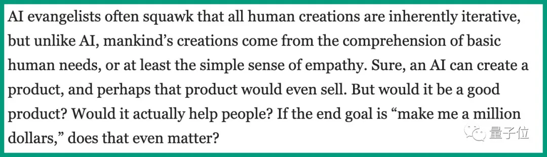 AI本质上是迭代的,生成的内容基于训练数据,它并不能真正理解所生成内容在实际生活中的情境。但与AI不同,人类的创作源于对基本人类需求的理解,或至少源于简单的同理心。