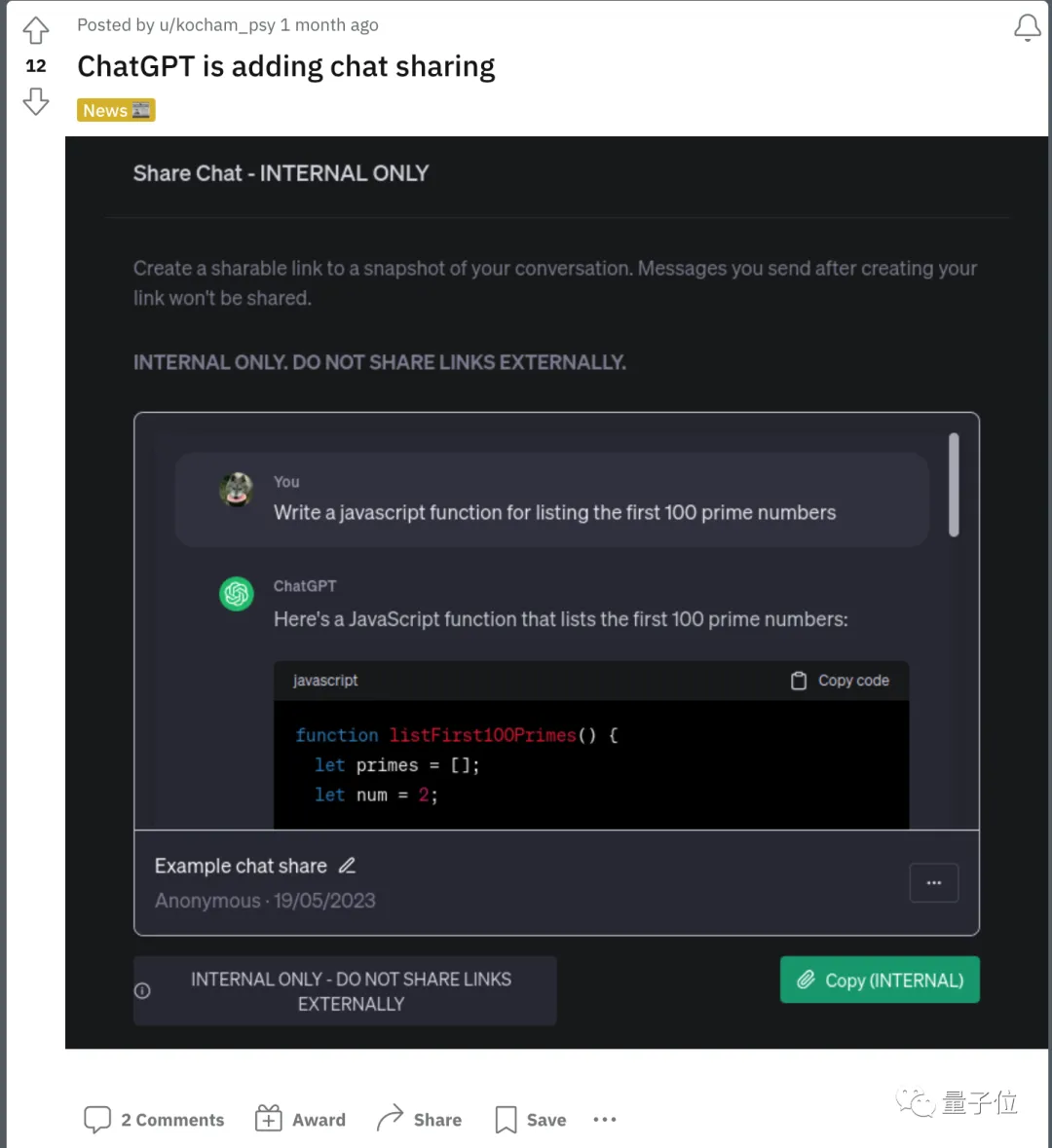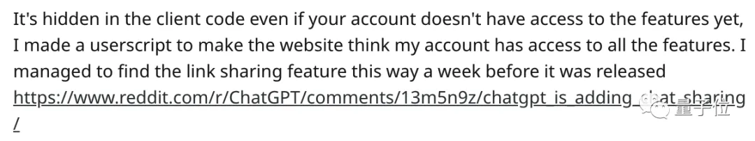 并且1个月前,他就用这种方法发现了**“对话分享”** 功能——比该功能正式发布提前了一周 左右。