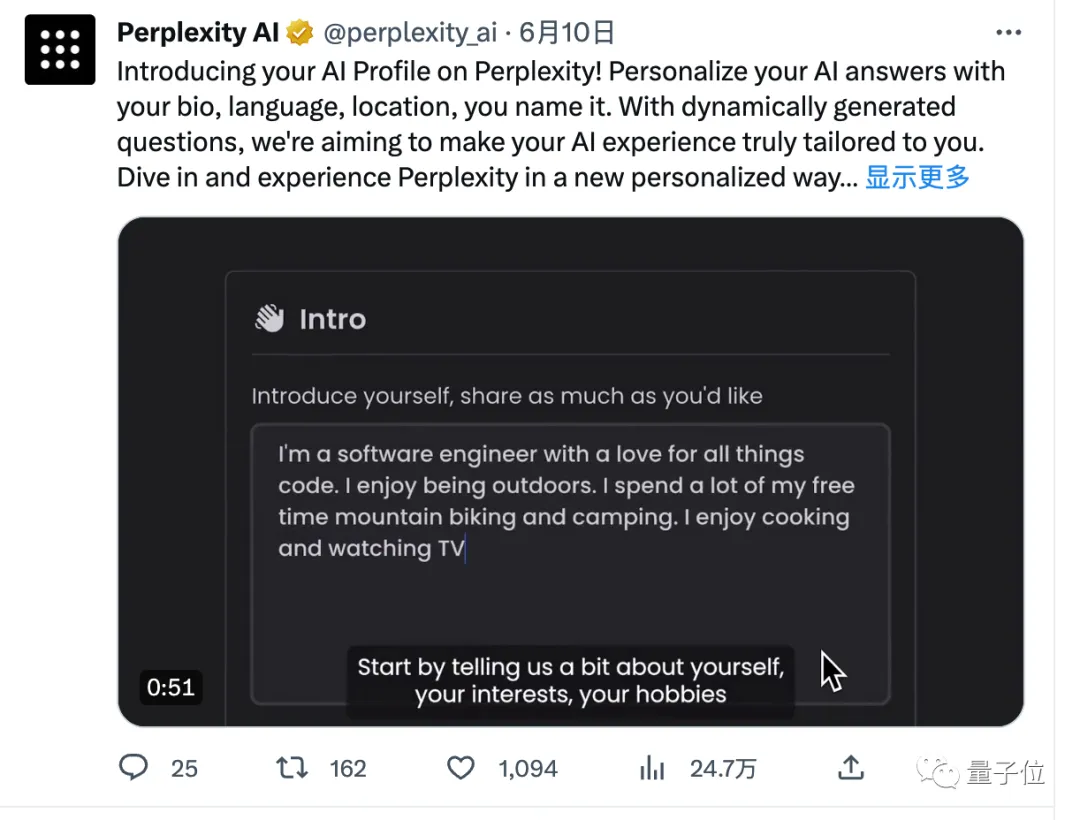 在Perplexity AI上,除了填写自我介绍、所在位置和希望AI使用的语言,AI还会提问更多问题,也可以当做应该告诉AI什么信息的一个模板。