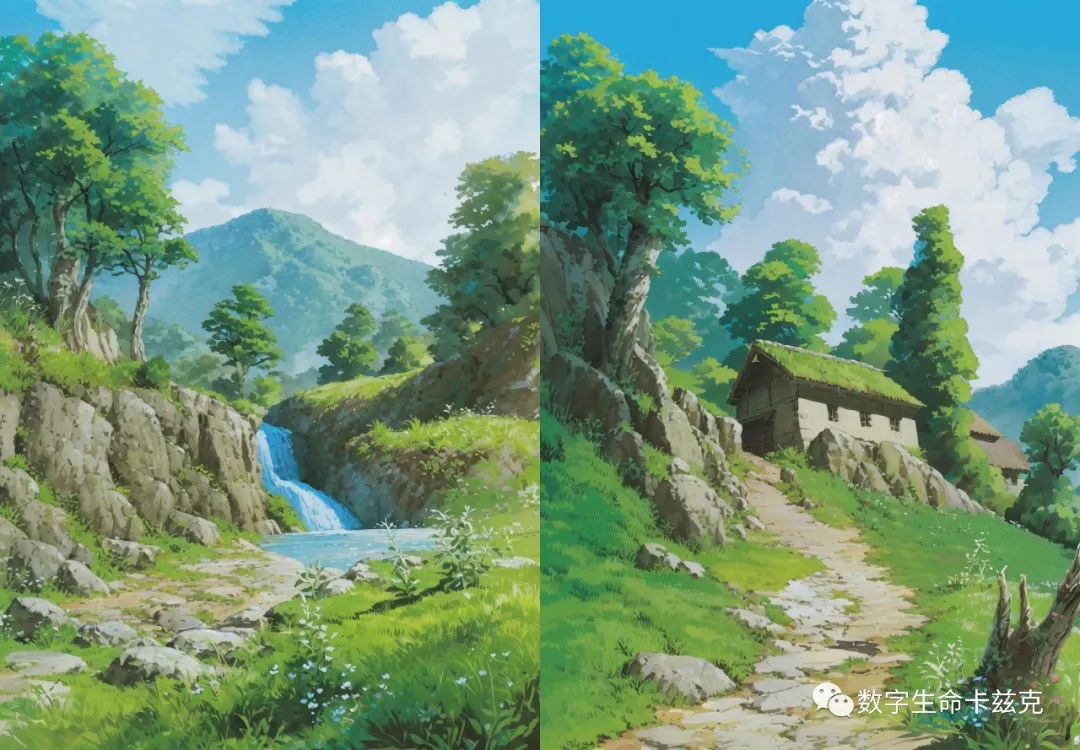以吉卜力风格为基底,做出来的2D版风景特化,颜色干净,很有吉卜力的风格,出图率挺高的,为数不多的我觉得不错的风景模型。