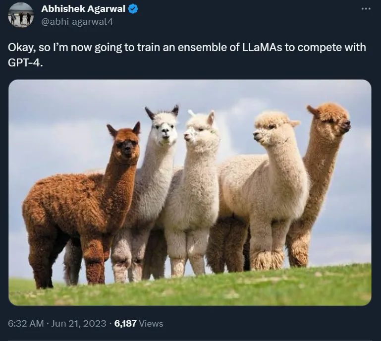 有人从中得到了灵感,声称要训练一个 LLaMA 集合来对抗 GPT-4。