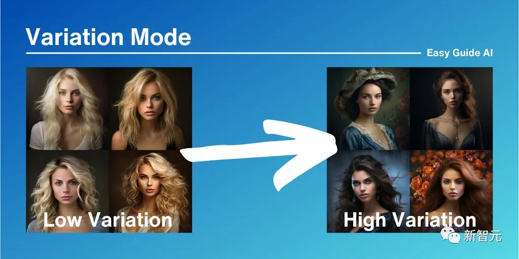 Midjourney V5.2还附带了一个名为「变化模式」的新功能,可以用户反复打磨想要应用于输出的视觉细微差别。