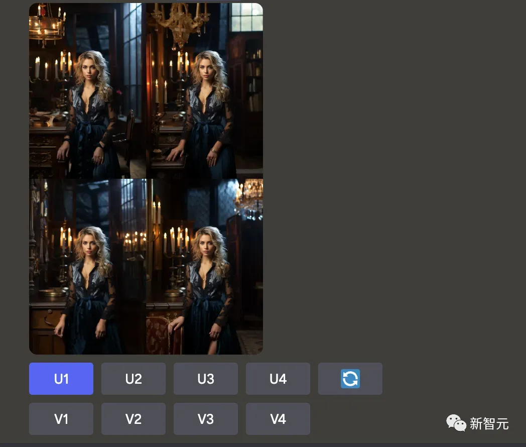 在选择了4个Upscale的图案中的一个之后,还可以接着选择放大两倍对照片进行持续缩放。