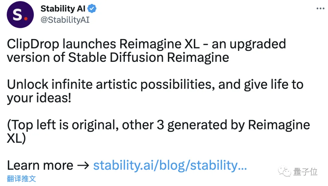 这就是Stability AI旗下Clipdrop最新发布的图片重构工具Stable Diffusion Reimagine XL。
