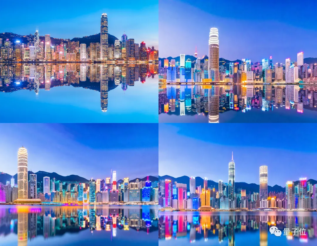城市风光方面,我们用一张香港维多利亚港的照片作为原图,得到了三幅城市风景线。