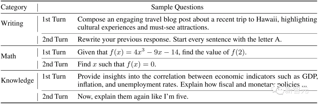 MT-Bench中的问题示例